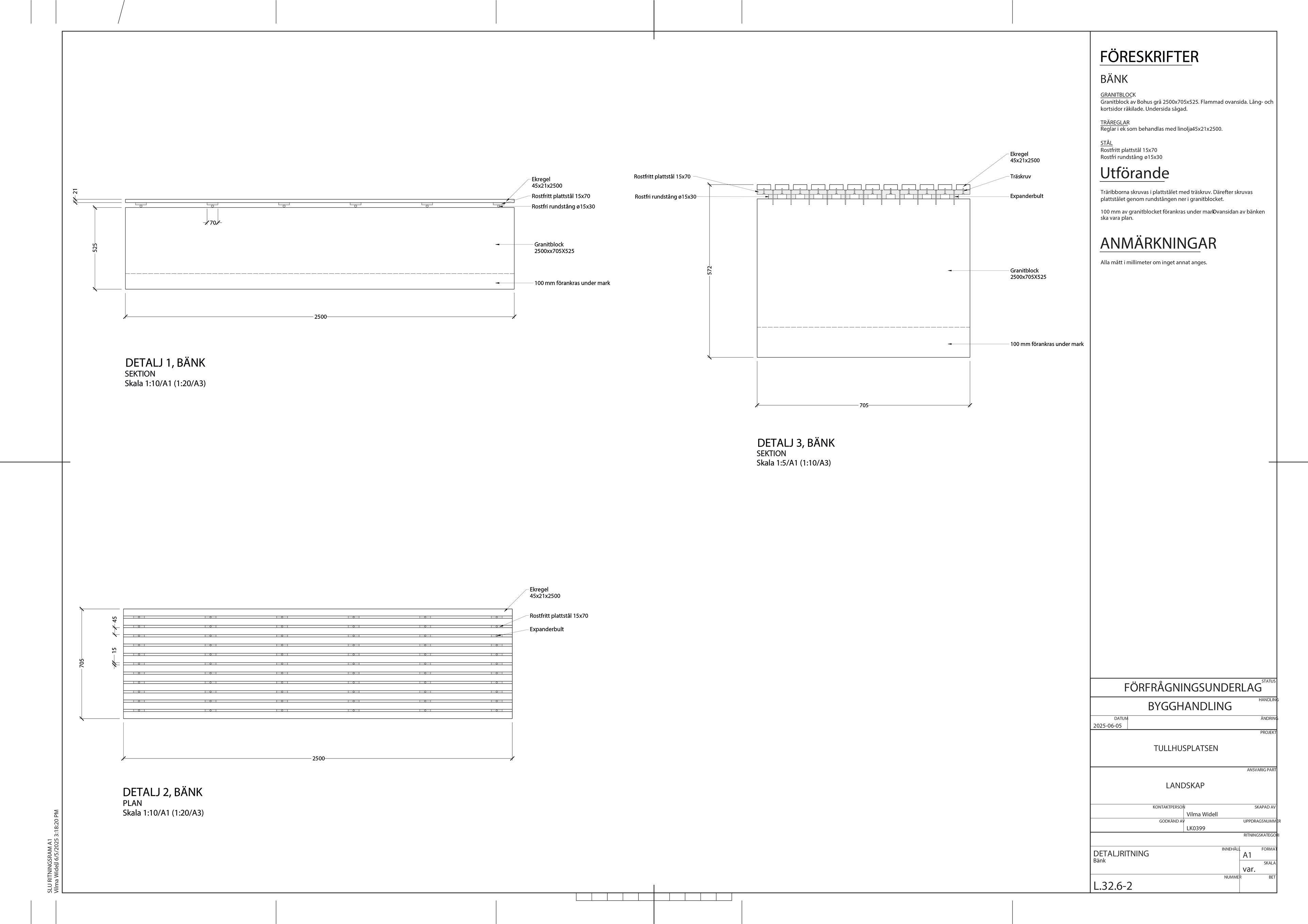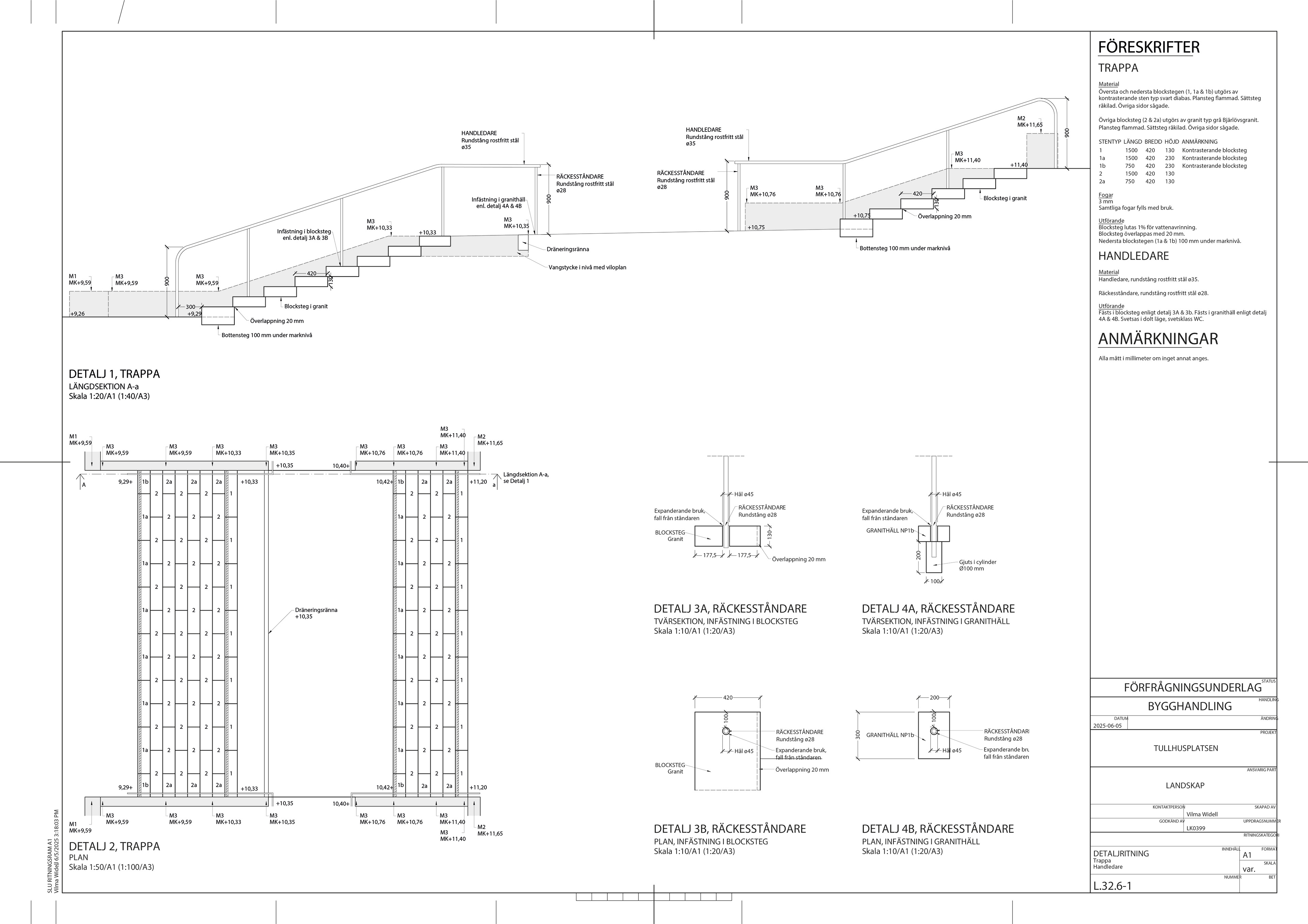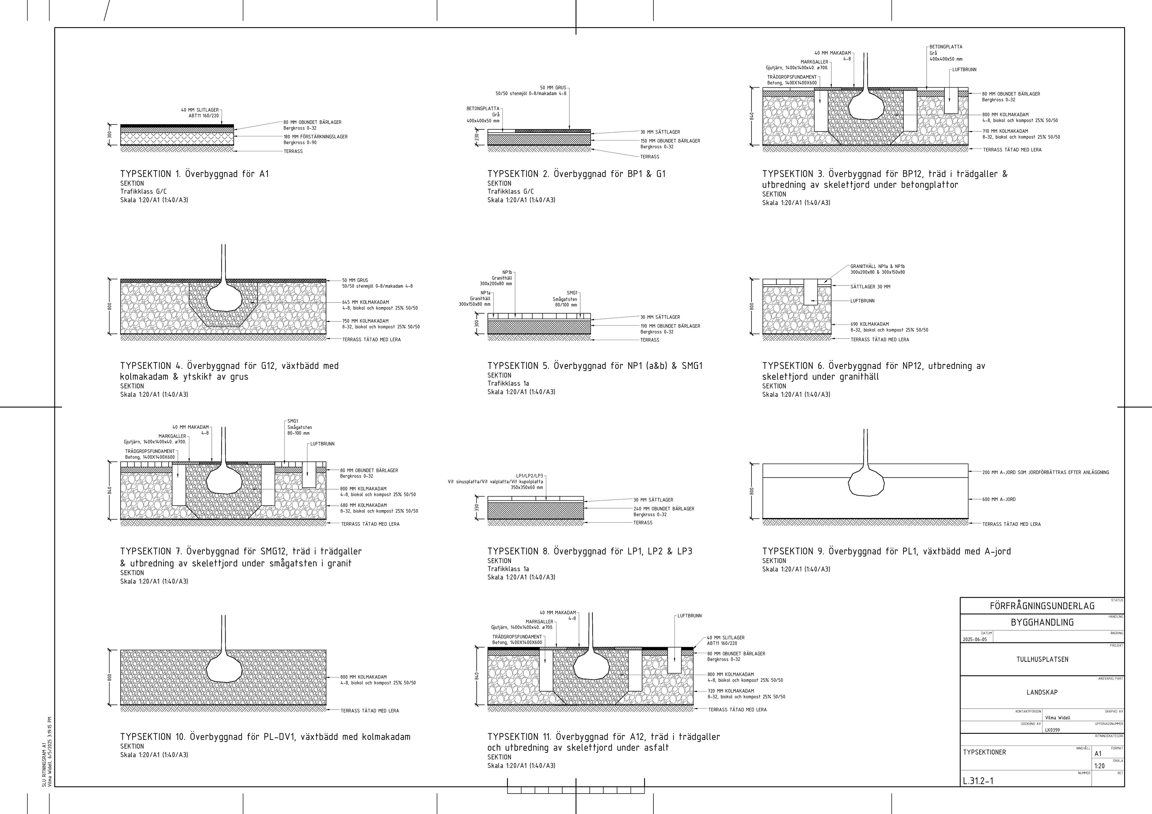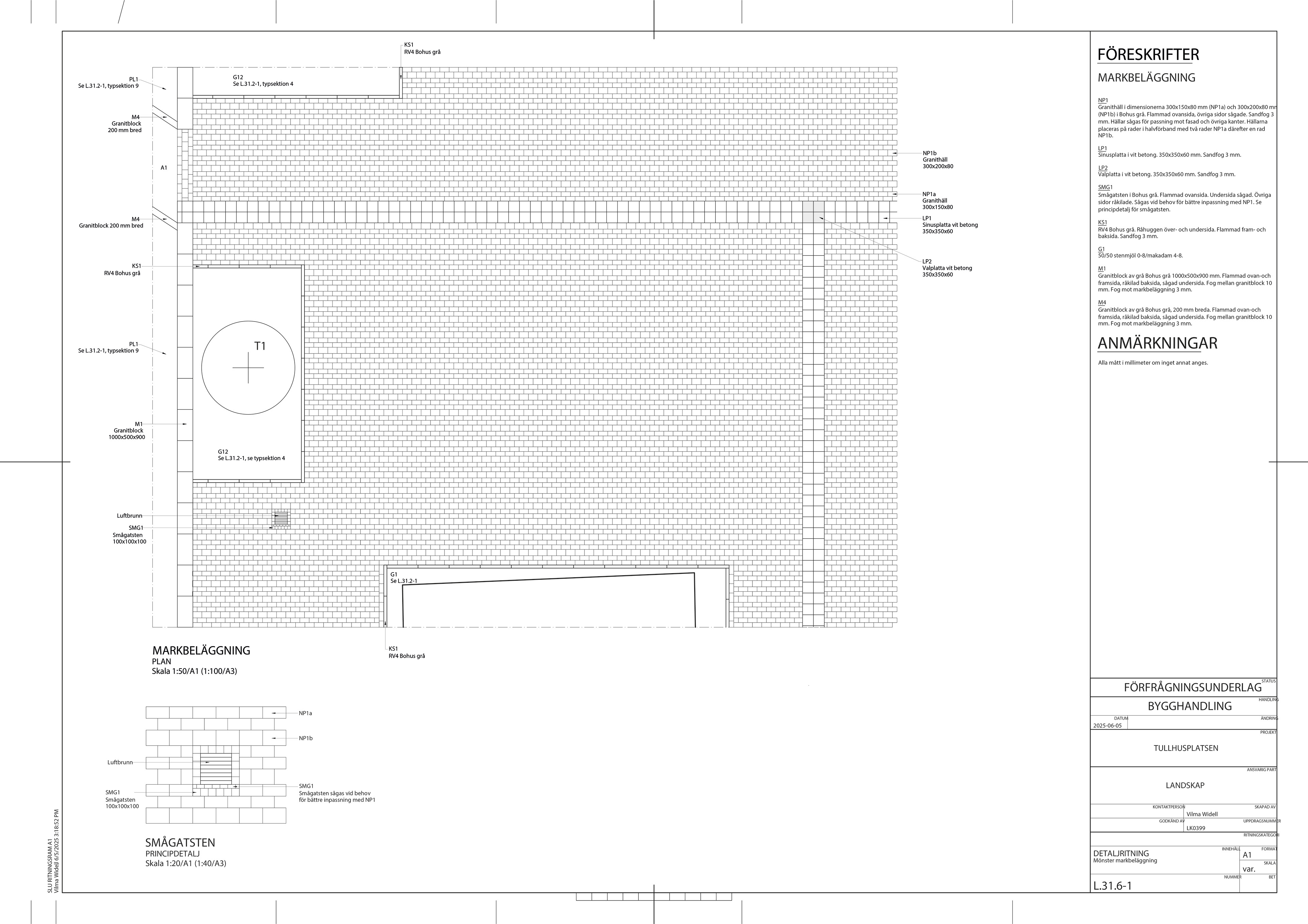 Inom fortsättningskursen för markprojektering tog jag fram fem olika ritningar för Tullhusplatsen – ett planerat torg vid Norrtull i Stockholm. Arbetet baserades på en illustrationsplan framtagen av White Arkitekter. Projekteringen innefattade uppgifter såsom att lösa praktiska funktioner som höjdsättning för dagvattenhantering, utformning av marköverbyggnader för olika material samt gestaltningsmässiga detaljer såsom markmönster.
